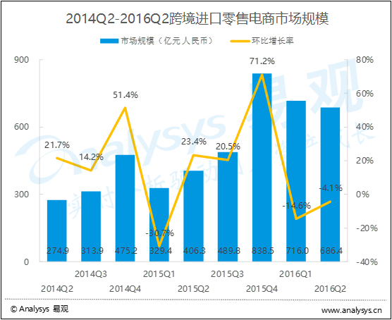 2016年第2季度中國(guó)跨境進(jìn)口零售電商市場(chǎng)規(guī)模統(tǒng)計(jì)分析