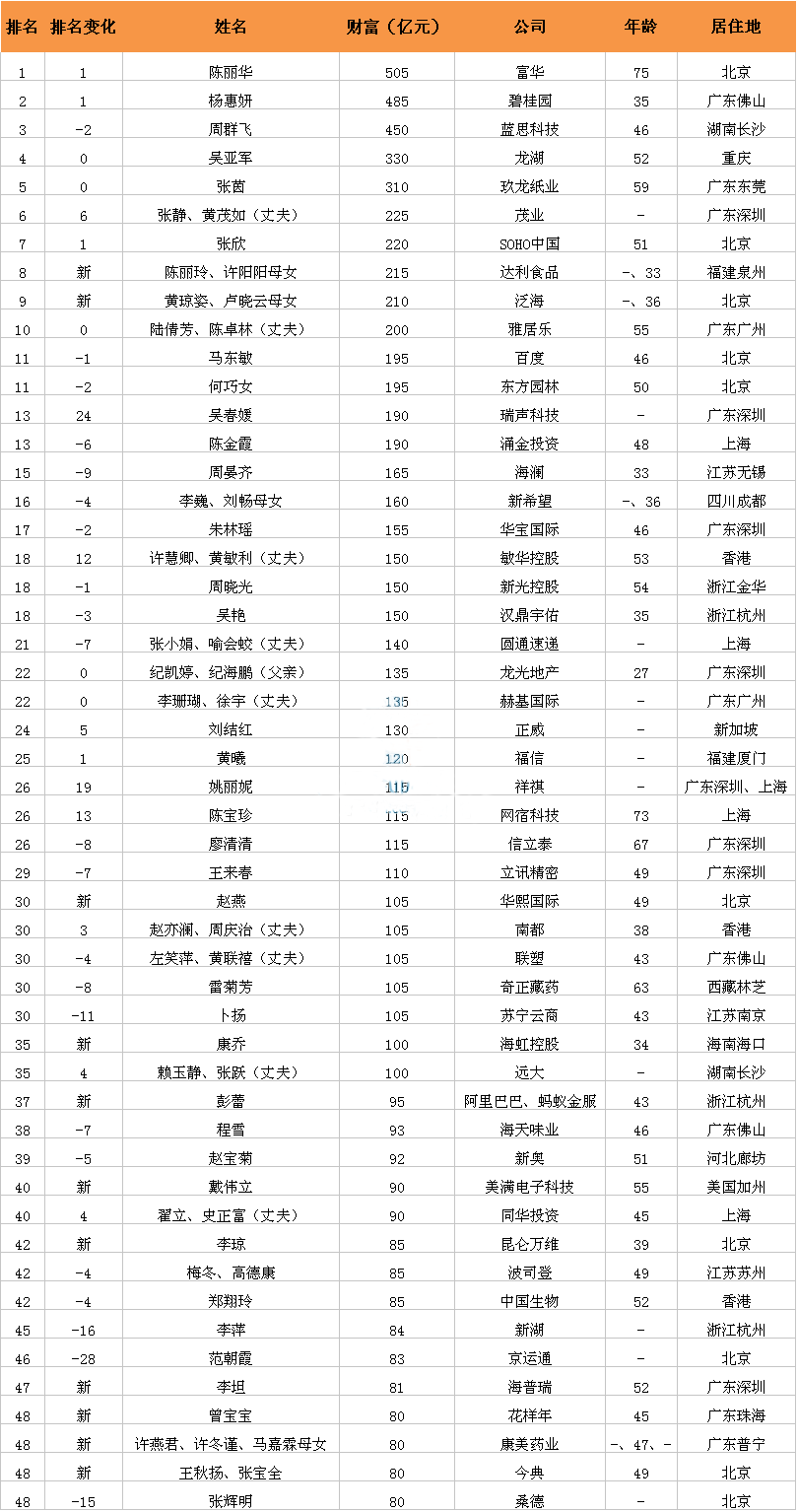 • 2016胡潤女富豪榜 東方園林何巧女上榜