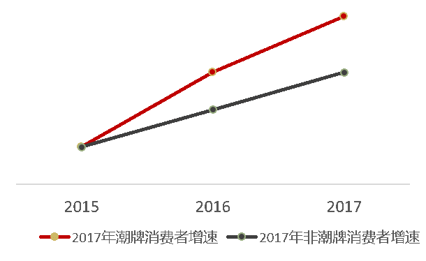 (4)從增長趨勢來看,自2015年起,潮牌服裝消費者的增長趨勢明顯遠超非潮牌,且增速差距愈發明顯。