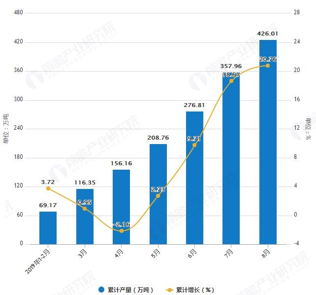 2019年1-8月湖南省飲料產(chǎn)量及增長(zhǎng)情況